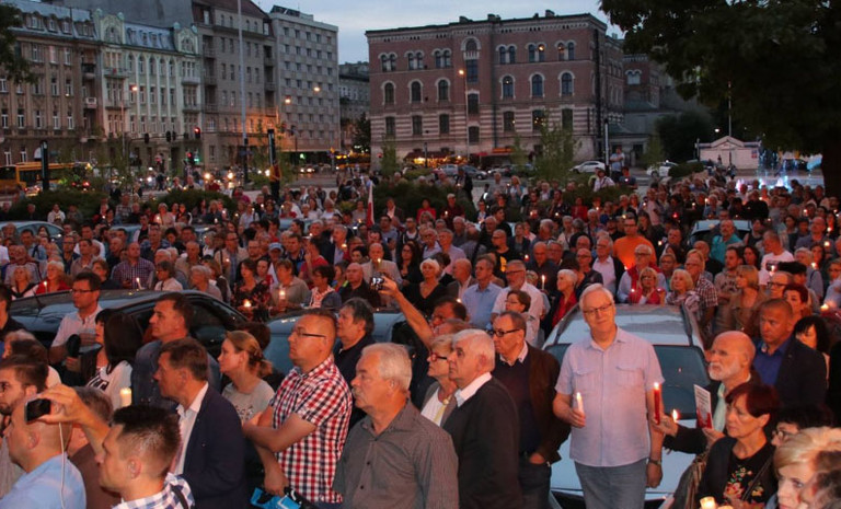 Łódzki plac Dąbrowskiego, przed siedzibą Sądu Okręgowego dziś wieczorem zapełnił się niemal w całości. Ponad tysiąc łodzian zebrało się, by zaprotestować przeciwko ...