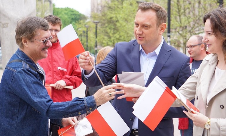 Politycy i działacze łódzkiego SLD uczcili Dzień Flagi, rozdając mieszkańcom i turystom spędzającym majówkę w Łodzi, flagi narodowe i egzemplarze Konstytucji RP.